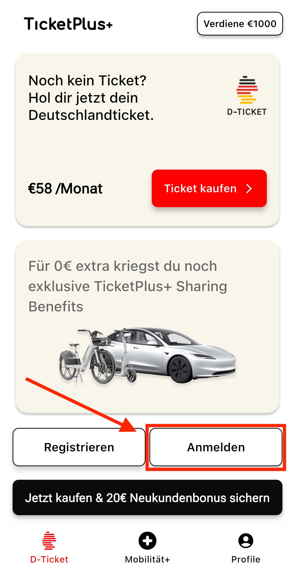 Wichtig: Wenn du bereits ein Konto hast, melde dich bitte über die Schaltfläche „Anmelden“ in der App an: